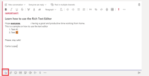 Following with our tip to better work from home using Microsoft Teams, today I would like to you show how to add rich text content to a chat or teams/channels.